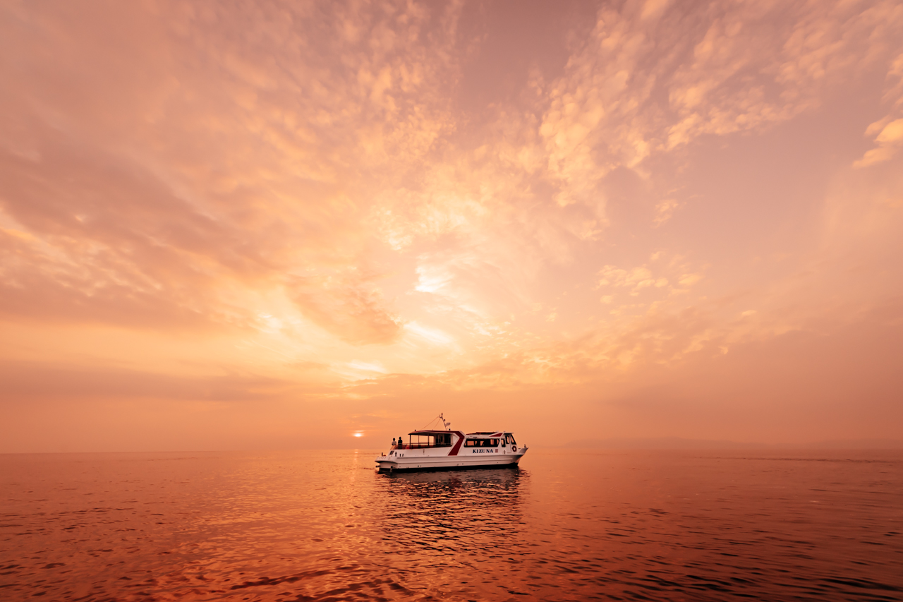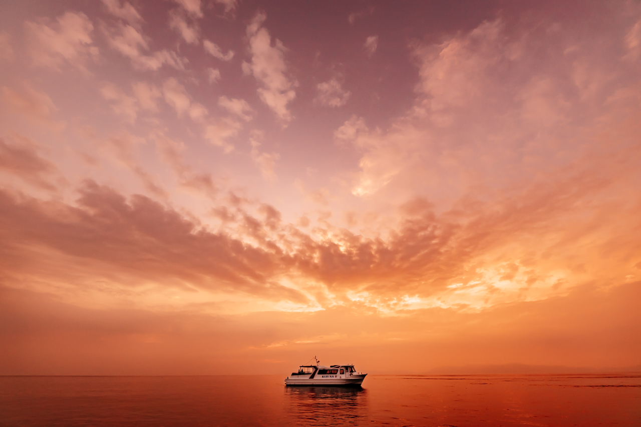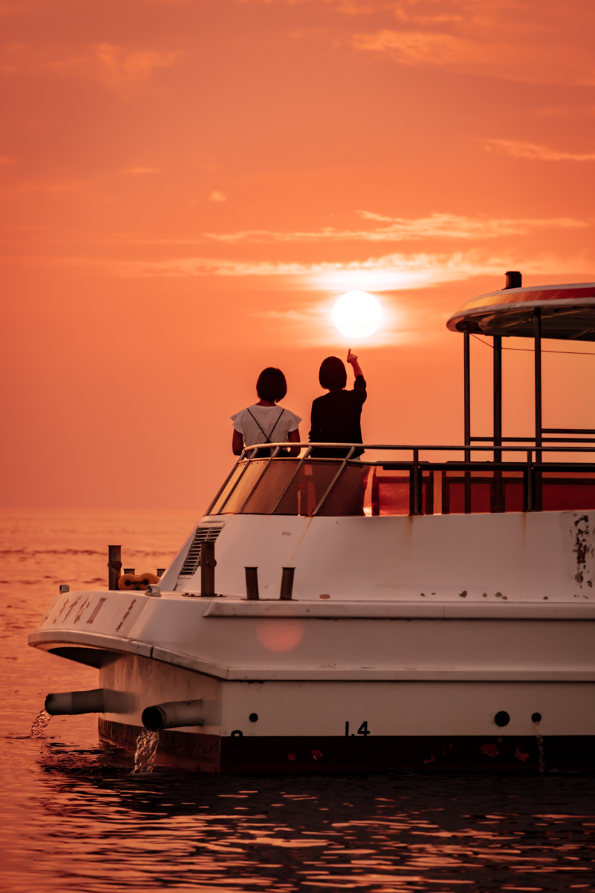 苓北町の新しい観光コンテンツとして、サンセットクルージングが2023年4月からチャーター船として本格運航を開始しました。2022年10月末~12月初旬の毎週金曜日・土曜日に実施した試験運航では、お客様から「夕日が海に沈む瞬間が感動的で、すてきな時間が持てました。」「海に太陽の道が出来たのを目で見れたのは感動でした。雄大さと神秘的な時間を満喫出来ました。」などの声をいただきました。ご協力いただいた皆様の声をもとに、苓北町の魅力ある旅行商品へと磨き上げました。どうぞお楽しみください!