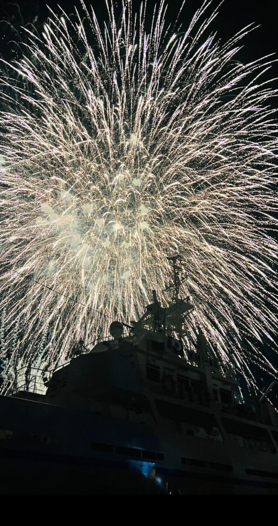 お二人目はニックネーム「肘肩頓挫ブ郎」さん、タイトルは「向月葵」で「毎年見ているじゃっと祭の花火を背景に富岡港にとまる熊本丸を撮りました!」とのことです📸