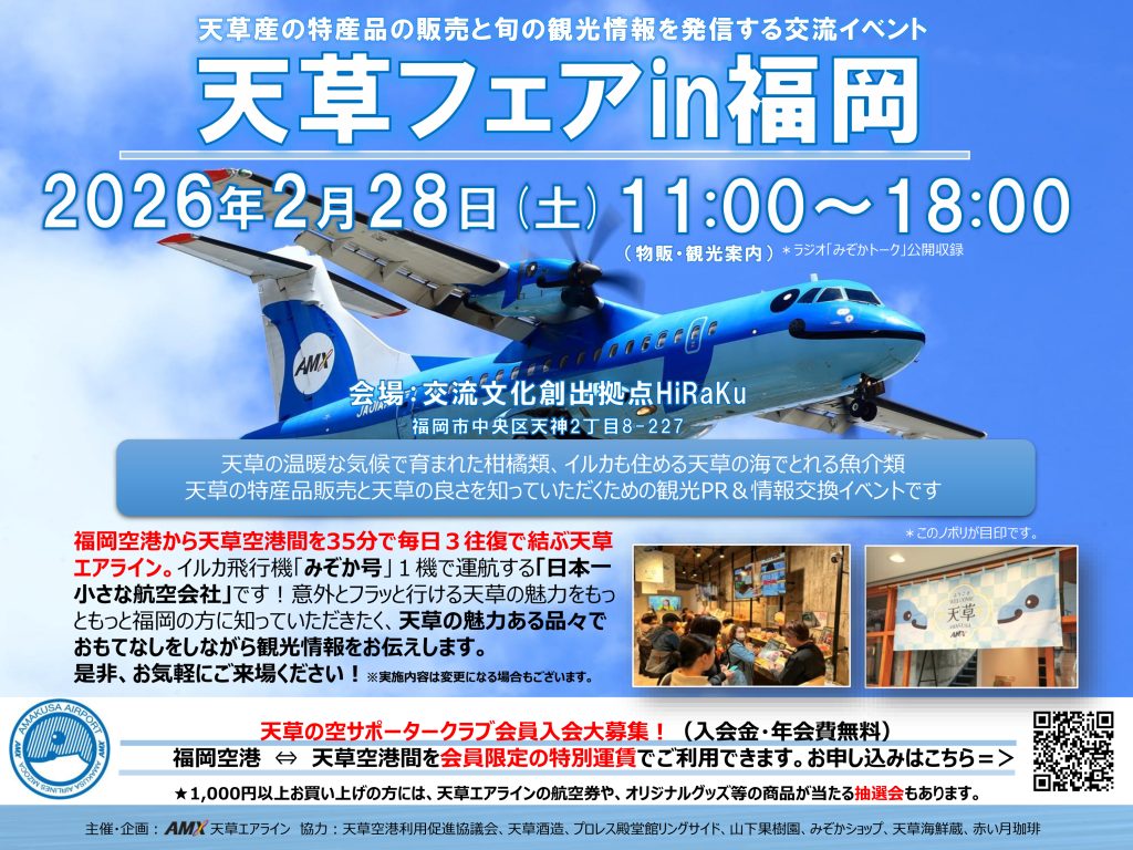 来たる2月28日(土)、福岡市天神の「HiRaKu」にて開催される「天草フェア2026」に私たち苓北町も出展いたします!